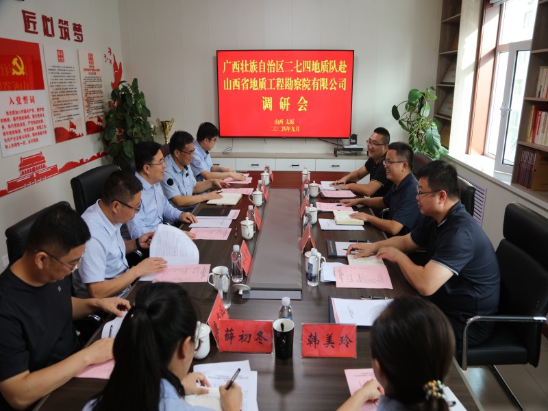 9月26日,广西壮族自治区二七四地质队队长徐海棚、副队长刘华尧、总工办副主任郭正一到问鼎(中国)调研交流。公司党委书记、董事长赵政主持调研交流会,公司相关领导班子成员及部门负责人参加调研。